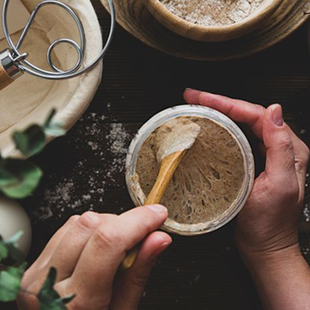 Im Gemisch aus Mehl und Wasser starten Milchsäurebakterien und Hefen einen Gärprozess. Sie ernähren sich von der Stärke im Mehl, die durch Enzyme aufgespalten wird. Dabei entstehen Milchsäure, Essigsäure, Kohlendioxid, Alkohol und viele Aromastoffe.